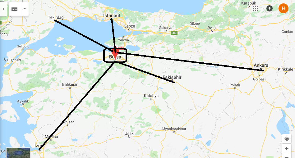 • Kocaeli Bursa arası yaklaşık 150 kilometre