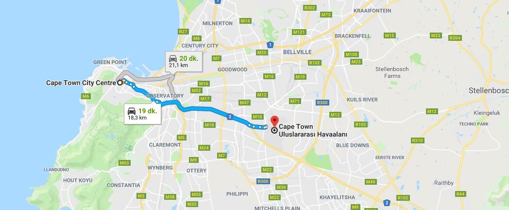 Türkiye’de İstanbul Atatürk Havaalanından THY ile gidilen Cape Town kentine (Ayrıca Qatar Airways ile Doha’dan ve Emirates ile Dubai’den Aktarmalı gidebilirsiniz.) gittiğinizde şehir merkezine nasıl geçeceksiniz.