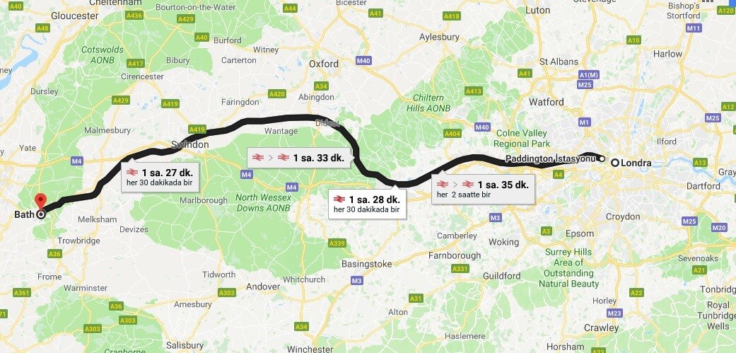 | Tren kullanarak Londra’dan Bath kentine Paddington tren istasyonundan 1.5 saatte gidebilirsiniz. |