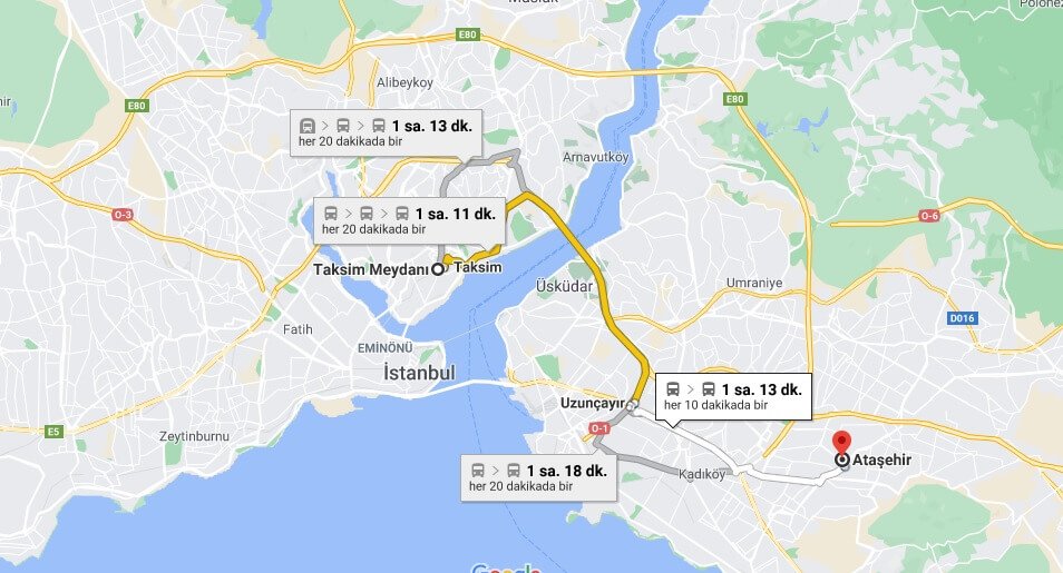 İstanbul ilimizin en çok ziyaret edilen meydanı olan Taksimden Ataşehir semtine nasıl gidilir? Ataşehire giden otobüs, Tren, Metro ve Dolmuş ile gidebilirsiniz.