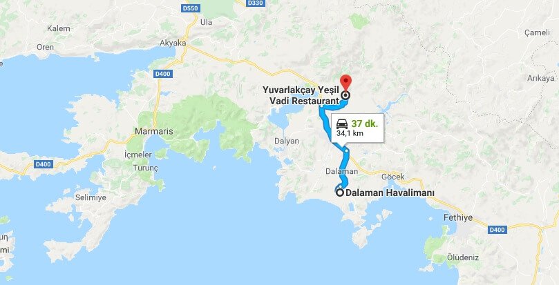 | Uçakla gelenler için en yakın hava alanı Dalaman hava limanıdır. Dalaman hava limanından buraya 40 km mesafe bulunmaktadır. |